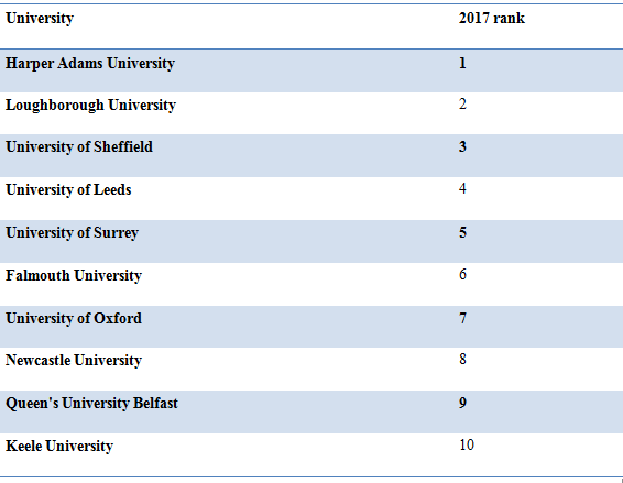 在2017年的調(diào)查中,拉夫堡大學(xué)排名第二,2006年拉夫堡大學(xué)連續(xù)7次榮獲第一,其他年度調(diào)查也從未跌出前5名。在這十年的調(diào)查時間里,拉夫堡大學(xué)一直都深受學(xué)生們的青睞,并收獲著可喜的成績