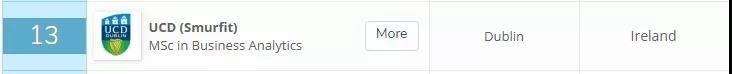 商業(yè)分析專業(yè)(Msc in Business Analytic)排名全球第13位,