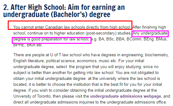 是的,不需要。在加拿大,高中生不能直接申請大學的法學院。而是拿到本科學位(部分法學院接受本科在讀學生)單獨申請法學院。