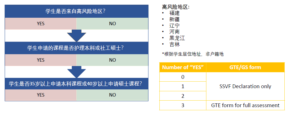 ● 所有護(hù)理本科和社工碩士的申請(qǐng)人都需要提供詳細(xì)GTE表格,其他專業(yè)SSVF即可。