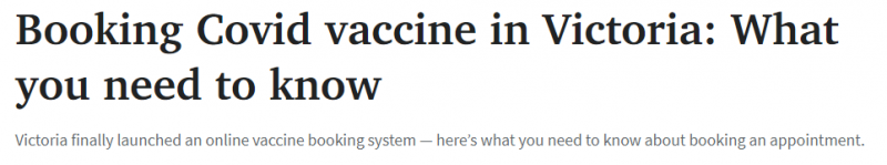 近期在維州疫苗接種火爆,各個(gè)接種點(diǎn)都是大排長(zhǎng)龍,疫苗預(yù)約電話頻頻占線,根本打不進(jìn)去。不過(guò),墨爾本人如今迎來(lái)好消息!維州終于推出了一個(gè)網(wǎng)上疫苗預(yù)約系統(tǒng),以下是關(guān)于預(yù)約你需要知道的事!