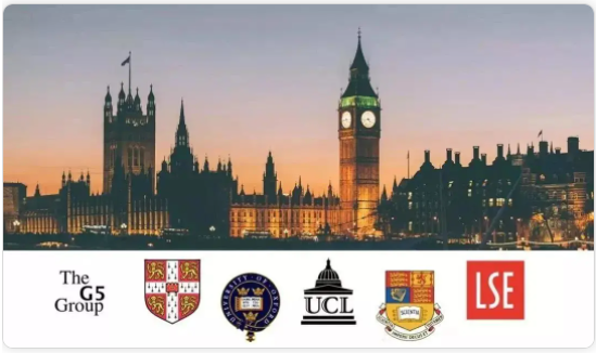 英國G5院校,即英國5所精英院校,包括牛津大學(xué)、劍橋大學(xué)、帝國理工學(xué)院、倫敦政治經(jīng)濟(jì)學(xué)院、倫敦大學(xué)學(xué)院。