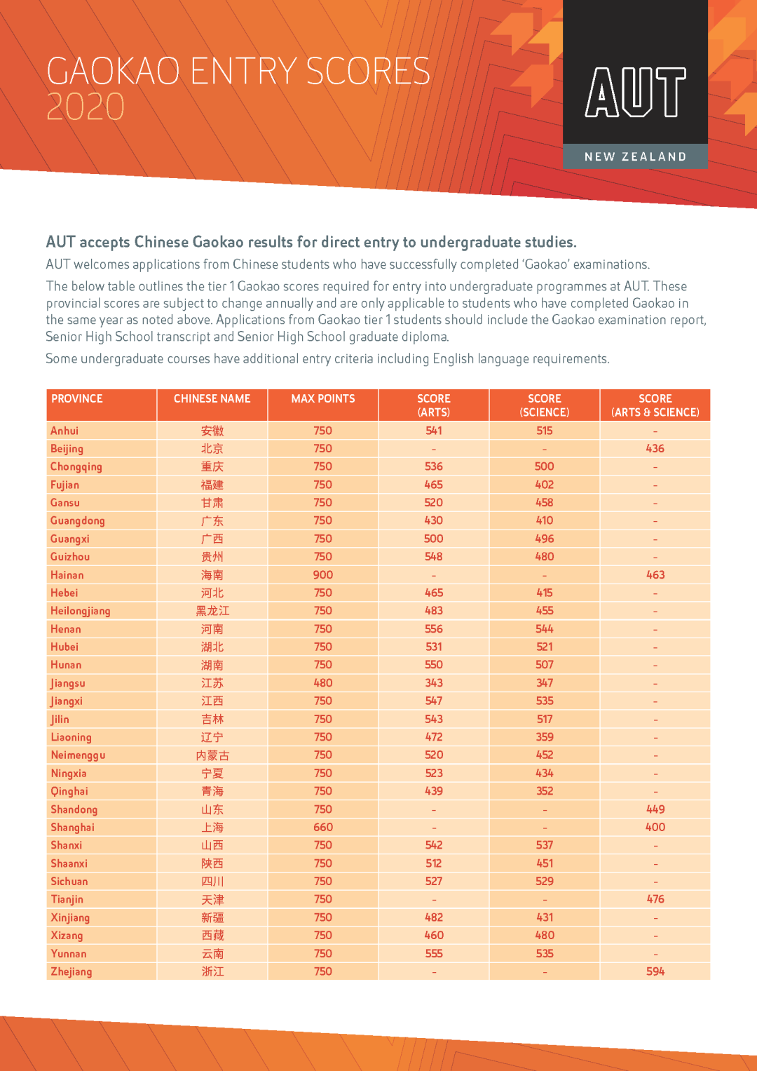 高考直錄:中國高考達(dá)到一本分?jǐn)?shù)線或?qū)W校規(guī)定的高考總分百分比(Tier One)可直錄新西蘭八所大學(xué)本科。