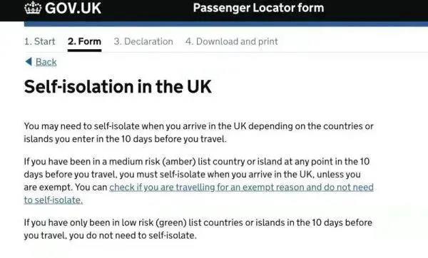 對于未接種疫苗或所接種疫苗不符合新規(guī)要求的人群,入境英國除了攜帶從最終出發(fā)地出發(fā)前72小時內(nèi)的核酸檢測陰性證明,仍需預定好隔離酒店及兩次核酸檢測包。隔離時間為10天,在入境后的第2天和第8天將分別進行一次核酸檢測。在抵達前48小時內(nèi)需填寫并提交旅客定位表(Passenger Locator form),需要及時寫明到達英國后進行新冠檢測的地點,以及測試的預定參考號。
