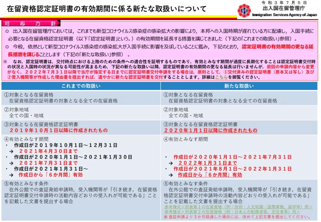 7月5日,日本出入國在留管理廳發(fā)布最新消息,2020年和2021年獲得的在留資格認(rèn)定書有效期將再次延長。