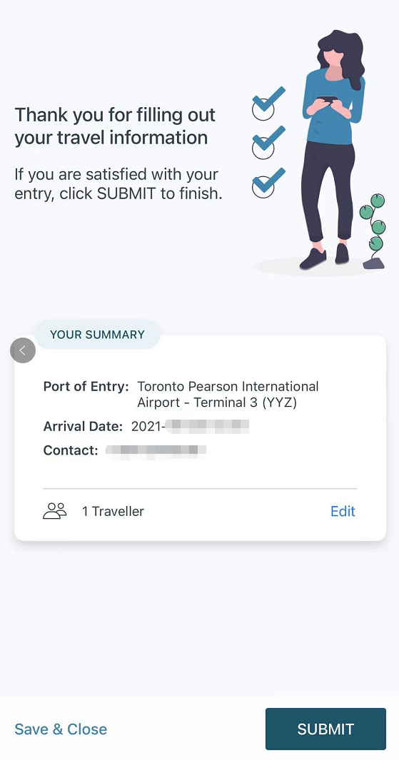 另外,所有抵達(dá)加拿大的旅行者(包括加拿大人),也都必須使用ArriveCAN來(lái)登記他們的個(gè)人信息、聯(lián)系方式和旅行行程,包括隔離計(jì)劃、COVID-19測(cè)試信息。