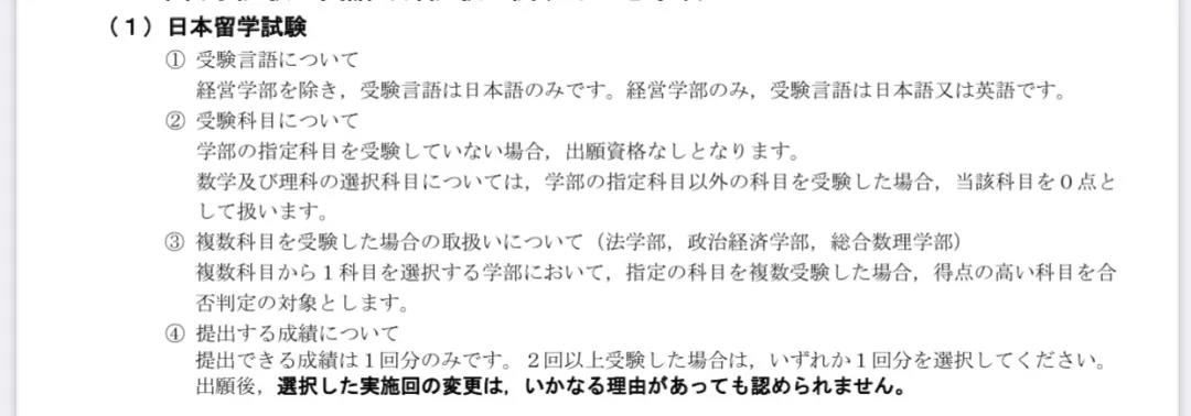 早大對于日語的要求就放開了不少,無論是能力考還是留考日語都認(rèn)可,并且小栗雨找遍了簡章都沒有發(fā)現(xiàn)所有學(xué)部對成績的要求。其中只有法學(xué)部明確的要求日語能力考必須要達到N1水平,其余的完全沒有細說,只是強調(diào)上交考試的成績單??磥碜罱K判定的標(biāo)準(zhǔn)還是學(xué)校自己說了算。