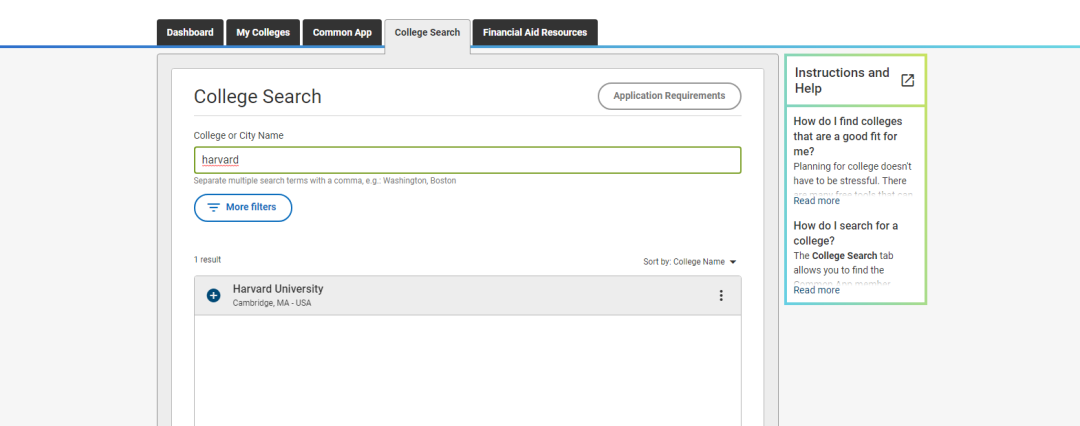 選擇完一所學(xué)校之后,可以繼續(xù)添加其他學(xué)校,或者點(diǎn)擊學(xué)校名稱(chēng)/點(diǎn)擊右側(cè)的按鈕/在My Colleges中查看已添加的學(xué)校信息。