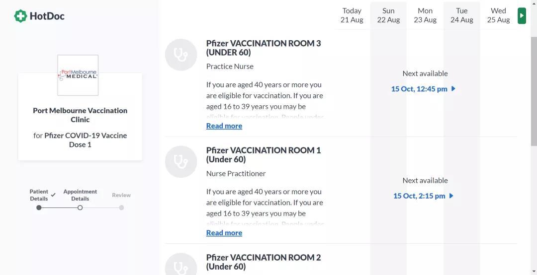 很多診所目前顯示的可預約時間都已經到了十月份。