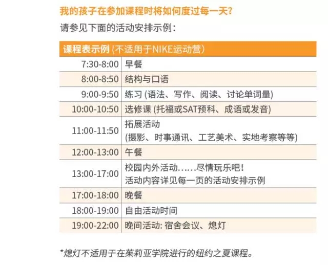 | 特別包含項(xiàng)目 | 紐約城市地鐵暢游卡、營地參與證書、課程書籍、夏令營T恤、沙灘巾、USB腕帶以及手提袋 |