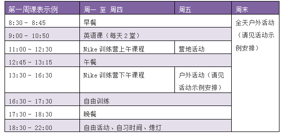 * 營(yíng)地課程結(jié)束后,學(xué)生最晚須在周六離開營(yíng)地。