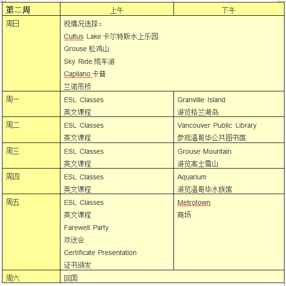 溫哥華公立教育局U-Hill&UBC夏令營,包括為期兩周的英文課程加當(dāng)?shù)靥厣顒?dòng)體驗(yàn)。上課地點(diǎn)在溫哥華教育局轄下中學(xué)University Hill Secondary School,教育局老師上課,入住到UBC大學(xué)學(xué)生宿舍,同時(shí)溫哥華公立教育局還為學(xué)生安排了豐富多彩的游覽計(jì)劃,如到Lynn Valley遠(yuǎn)足、暢游格蘭湖島(Granville Island)、史丹利公園(世界上最大,最美的城市公園)、乘吊車到高士雪山(Grouse Mountain) 游覽等。