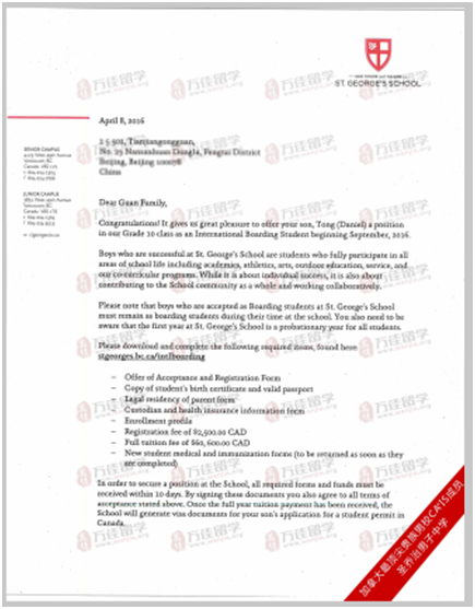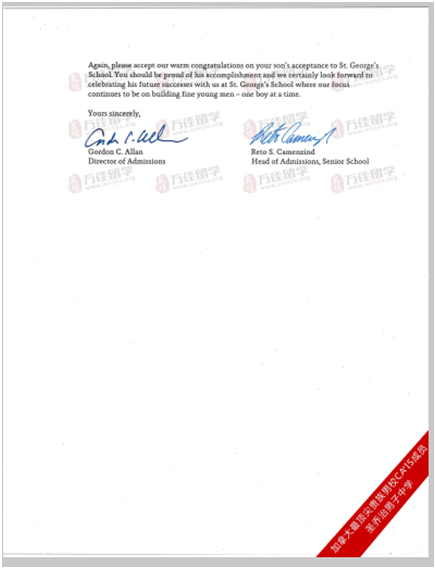 小關(guān)自從參加過英國和美國的夏令營后,就喜歡上了國外的教學(xué)體制和方法,心里一直有一個出國夢,但媽媽不放心提早出去,可他是一個非常有野心的孩子,之前自己在關(guān)注美國的學(xué)校,2月底才得知3.29日加拿大圣喬治頂尖貴族學(xué)校來訪,之前一點兒都不了解,媽媽多方了解到加拿大是相對比較安全的英語國家,且教學(xué)嚴謹,圣喬治學(xué)校不亞于美國好的私校,于2.29日雙方簽署了留學(xué)合同開始操作。萬佳留學(xué)李紅芬老師和文案同事和媽媽深度溝通后,媽媽也逐漸了解到圣喬治的錄取難度以及我們所面臨的壓力和挑戰(zhàn),尤其是這么短的時間去應(yīng)付,所以好幾次都會哽咽“說是自己把孩子給耽誤了”,當媽媽的真的不知道怎么做為好,只有真正做了才知道,尤其是頂尖私立貴族學(xué)校。據(jù)圣喬治國際事務(wù)部負責(zé)人Gordon Allan 先生說,他們從來沒有直接錄取過十年級的中國學(xué)生,是屬于高一的課程,難度是最高的了,學(xué)校明確講寧愿名額空出來,也一定不會降低錄取標準。SSAT成績是一方面,學(xué)生需要通過嚴格的考核,長達兩個小時的筆試以及40分鐘左右的面試以及家長的面試,且小關(guān)面試那天筆試恰巧是安排在晚上,口試是在第二天上午,占了兩天的時間;怎樣在短短的時間內(nèi)凸顯你,讓校方認同你,不僅語言能力,更重要的要結(jié)合圣喬治要求的六個核心理念“同理心、謙卑、誠實正直、尊重他人、勇于承擔、抗逆能力強”。通過我們和小關(guān)同學(xué)和媽媽的多次溝通,發(fā)現(xiàn)他是一名樂觀、積極、向上、陽光、有愛心、熱愛運動、生活自理能力強的健康男孩子。他的動手能力非常強,從小就喜歡拼裝各種模型,如機器人模型、汽車模型等??釔鄞蚧@球,經(jīng)常參加校內(nèi)外的籃球活動。去年暑假還遠赴美國參加了喬丹飛人訓(xùn)練營,受益頗多。不僅和其它國家的小朋友切磋球技,還在語言交流上有了很大的提高。他還極富領(lǐng)導(dǎo)力和團隊意識,小關(guān)成長了許多對外界有更多和更深的了解。從思維和邏輯上怎樣游刃有余的與面試官面對面,珍惜好與面試官的每分每秒,這完全離不開我們文案老師對小關(guān)同學(xué)的深度培訓(xùn),細致到“如果給你100加幣的話,你會怎么花”等等一些前瞻性的問題,引發(fā)學(xué)生多方面思考;包括家長怎么面試,尤其是一直緊張的媽媽,在臨面試前連續(xù)發(fā)燒,為孩子的事情心急如焚,爸爸是醫(yī)生提前安排好病人手術(shù)也無法來到現(xiàn)場,無形中施加了很大的壓力,我們和學(xué)生家長一起又是怎么默契配合的呢?所有的這一切,可能只有經(jīng)歷了才知道,尤其是在我們經(jīng)歷了許多貴族學(xué)校面試的成功案例的一個強大團隊背后的支持下,經(jīng)得起考驗。面試結(jié)束后,小關(guān)媽媽說的最多的話就是“感謝你們,我和孩子盡力了,你們也幫我盡了最大努力了,至于結(jié)果就看老天爺了”。的確是這樣,我們努力了,做到問心無愧,一切順其自然就好。