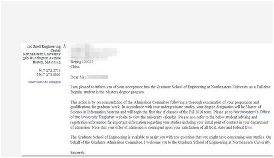 錄取結(jié)果:東北大學(xué)Northeastern University