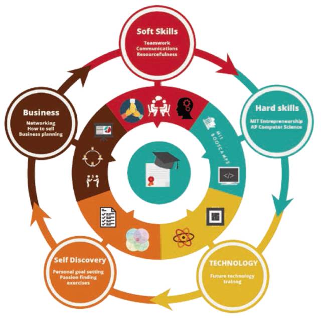 我們項(xiàng)目的第二部分是著重人工智能的深層次的科技訓(xùn)練。人工智能不僅僅會取代藍(lán)領(lǐng),機(jī)械的工作,還有更廣泛的領(lǐng)域例如保險(xiǎn)、銀行業(yè)、會計(jì)、法律和醫(yī)學(xué)??紤]到新科技破壞性強(qiáng)的特點(diǎn),傳統(tǒng)的制勝途徑已經(jīng)不再適用于今日的學(xué)生。我們通過向他們介紹人工智能領(lǐng)域的創(chuàng)新、機(jī)器人、3D打印、AR/VR和運(yùn)用這些技術(shù)的方式將他們引領(lǐng)到科技前沿,這樣,我們使學(xué)生們能夠在學(xué)習(xí)和工作方面做出更好的選擇。