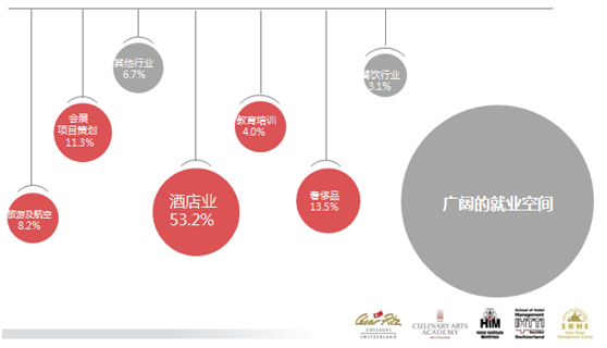 因此,酒店、旅游、會展、航空、奢侈品銷售等“泛酒店管理”行業(yè),在人才方面也有著共同的需求:如熟練掌握外語;了解各國文化差異和國際規(guī)則;良好的服務(wù)意識和前瞻性;專業(yè)獨到的管理理念;海外工作經(jīng)驗等。以上提到的人才特點,正是瑞士酒店管理教育對學(xué)生的培養(yǎng)目標,范圍涵蓋了“泛酒店管理”行業(yè)的相關(guān)知識,以及市場營銷、人力資源管理、公共關(guān)系、消費者行為學(xué)、財務(wù)會計等商科內(nèi)容,確保了學(xué)生畢業(yè)時擁有寬廣的就業(yè)道路。