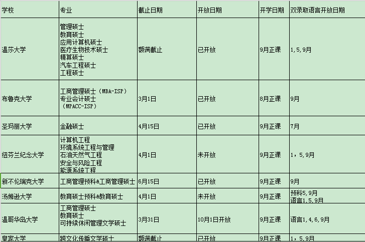 加拿大大學(xué)對(duì)于碩士的申請(qǐng)分兩種,一種有規(guī)定的開放日期和截止日期,學(xué)生需要在規(guī)定的時(shí)間內(nèi)申請(qǐng),如果沒有招滿的情況下,學(xué)校還會(huì)延遲申請(qǐng)截止日期。但是在2018年秋季招生中,學(xué)校都是嚴(yán)格遵守截止日期。另一種申請(qǐng)系統(tǒng)全年開放,學(xué)生實(shí)行滾動(dòng)入學(xué)。比較典型的溫莎大學(xué),2019年1月的正課申請(qǐng)?jiān)缭?月底到6月初就已經(jīng)提前結(jié)束,可見競(jìng)爭(zhēng)之激烈。