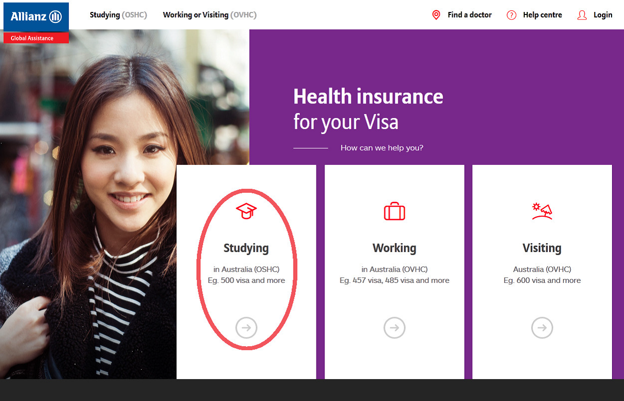 01 登錄保險(xiǎn)公司官網(wǎng)www.allianzassistancehealth.com.au 然后點(diǎn)擊Studying,如下圖所示