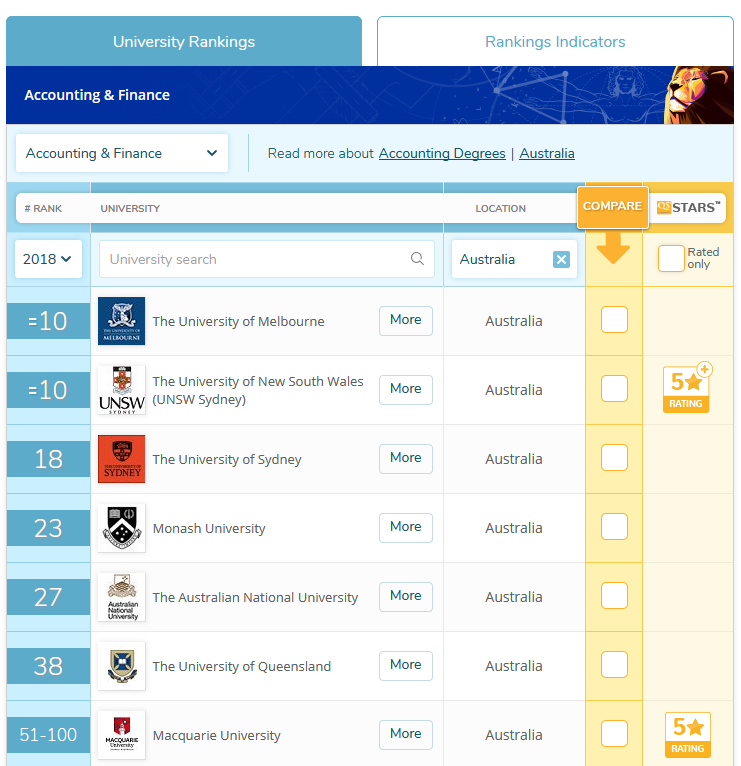 首先,給大家看一下澳洲金融專業(yè)有多強(qiáng)?請看下圖的2018-2019QS專業(yè)排名