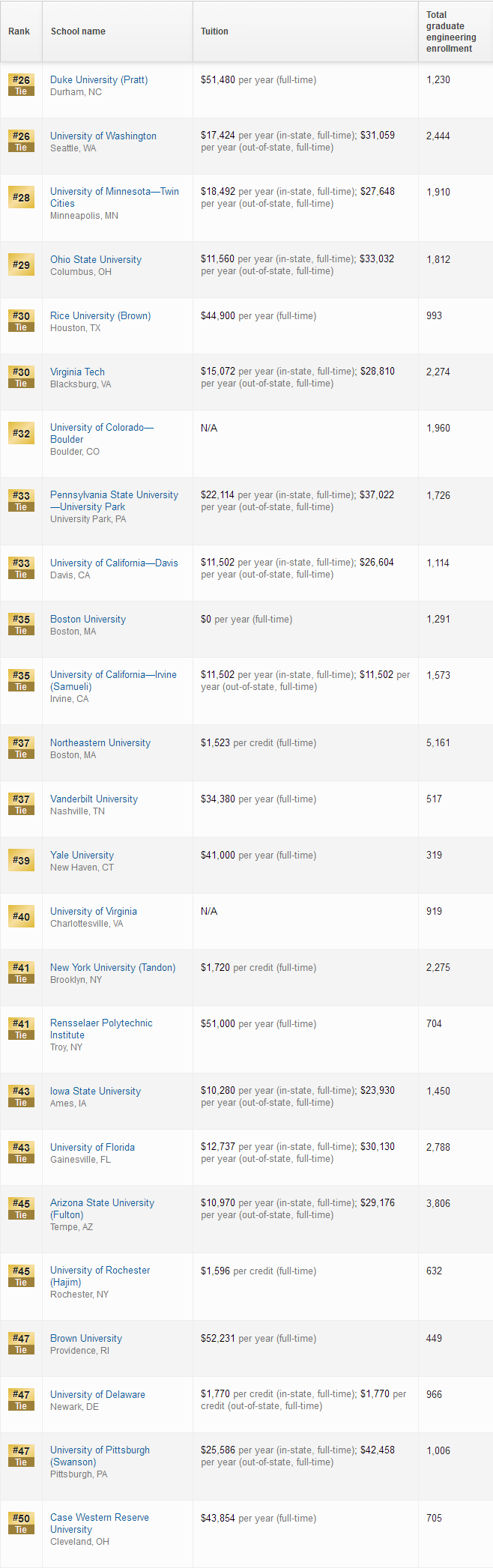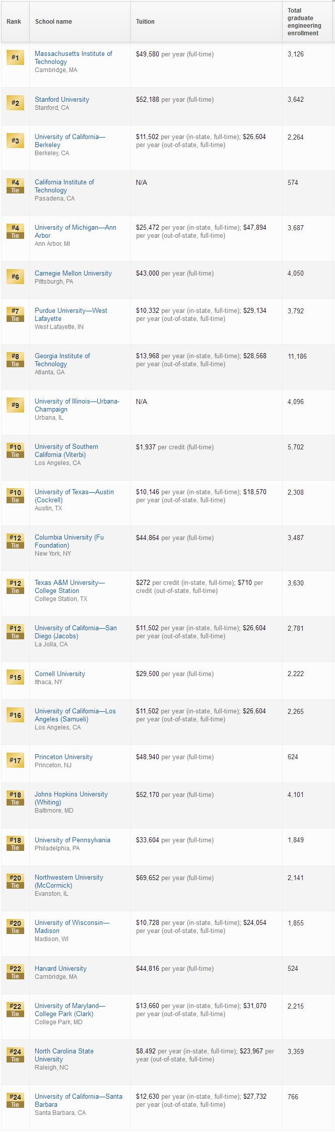 您的位置:首頁 > 留學(xué)攻略 > 2019USnews美國大學(xué)工程學(xué)院排名TOP50