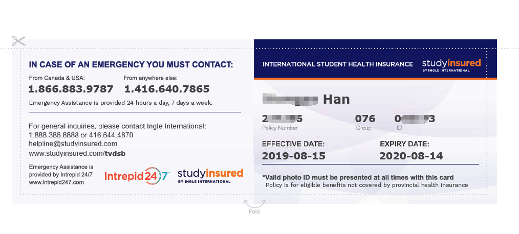 保險單(絕大部分學(xué)校統(tǒng)一購買。如果不提供需要自行購買。如果提前收到了保險單的學(xué)生自行打印剪裁,把卡放到錢包隨身攜帶備用)