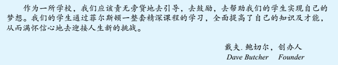 在這個(gè)充滿活力及文化滋養(yǎng)的校園環(huán)境中,學(xué)校為學(xué)生提供富有挑戰(zhàn)性的課程,小班化的教學(xué),個(gè)體化的關(guān)懷以及優(yōu)秀的師資力量。也正是因?yàn)橐唤z不茍的教學(xué)態(tài)度和嚴(yán)謹(jǐn)治學(xué)的管理理念,使得它在當(dāng)?shù)匾约皣?guó)際生中贏得極佳的口碑,每年的大部分新生都來自于校友及家長(zhǎng)的推薦。