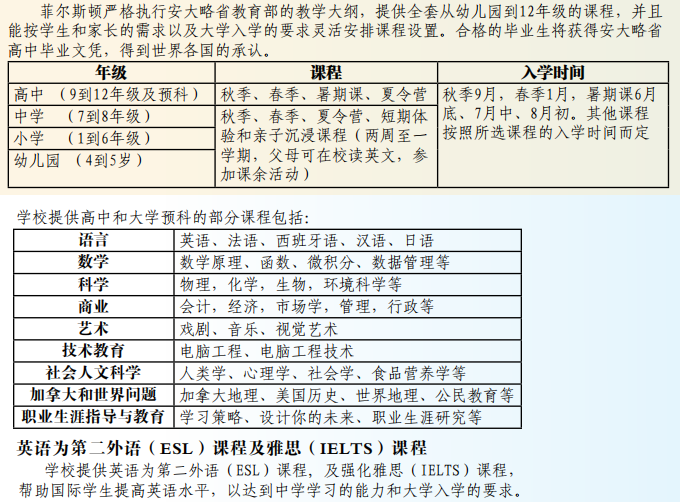 安大略省是加拿大高等教育最發(fā)達(dá)的省份,國(guó)際公認(rèn)的大學(xué)共有22所。其中名校林立,如多倫多大學(xué)、麥克馬斯特大學(xué)、西安大略大學(xué)、滑鐵盧大學(xué)和女皇大學(xué)等都是世界一流的高等學(xué)府,各具獨(dú)特的專業(yè)學(xué)術(shù)成就。多倫多是安大略省的首府。大多倫多地區(qū)人口超過600多萬,是加拿大最大的城市,亦是北美第五大都市。作為加拿大的經(jīng)濟(jì)、文化和金融中心,多倫多云集了世界著名的企業(yè)和科研機(jī)構(gòu)。多倫多也是世界上種族最多樣化的城市之一,其低犯罪率、潔凈的環(huán)境、高生活質(zhì)量,以及對(duì)多元文化的包容性,令多倫多市被多次評(píng)為世界上最適宜居住的城市之一。菲爾斯頓位于多倫多核心區(qū)域,距離市中心僅有幾公里,靠近地鐵站,與多倫多大學(xué)、約克大學(xué)、安省政府以及科技館等繁榮安全區(qū)均相隔不遠(yuǎn),地理位置十分優(yōu)越。而校園所處的高尚住宅社區(qū)在保證學(xué)生安全的同時(shí)也為他們營(yíng)造了恬靜舒適的學(xué)習(xí)氛圍。