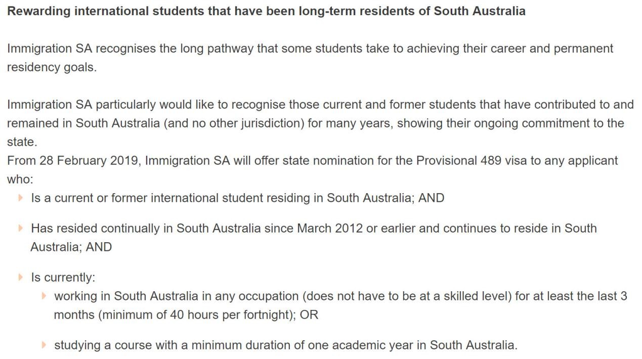 2019年2月28日起,南澳州移民局將向同時(shí)滿(mǎn)足以下三個(gè)條件的申請(qǐng)人提供489臨時(shí)簽證提名: