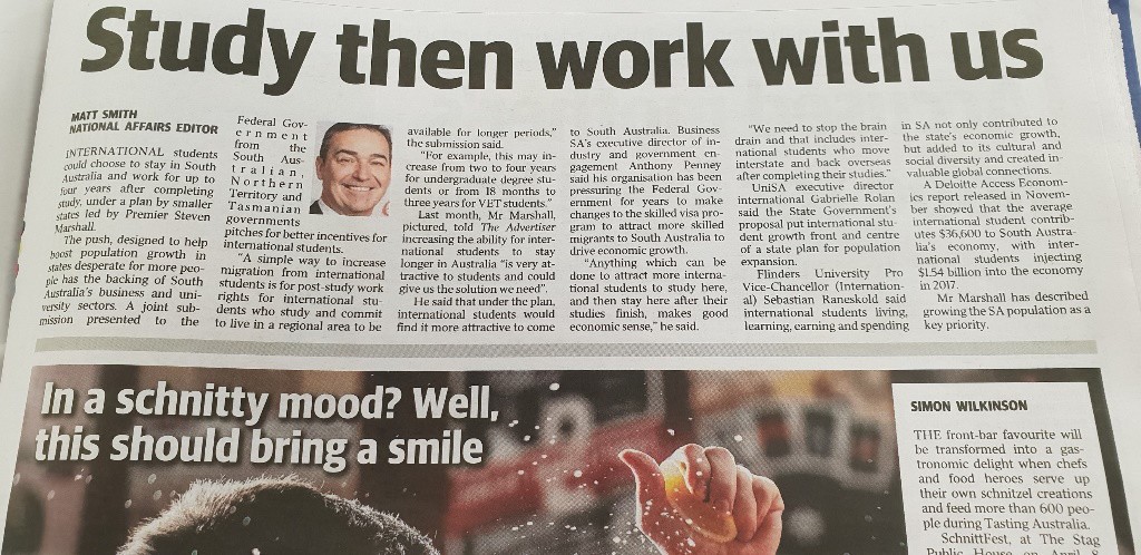 另外,南澳州州長(zhǎng)Steven Marshall的一項(xiàng)計(jì)劃,或?qū)⒀娱L(zhǎng)國(guó)際學(xué)生畢業(yè)后工作臨時(shí)簽證的有效時(shí)長(zhǎng),比如,將本科國(guó)際畢業(yè)生工作臨時(shí)簽證的有效時(shí)長(zhǎng)從2年延長(zhǎng)至4年,VET國(guó)際畢業(yè)生工作臨時(shí)簽證的有效時(shí)長(zhǎng)從18個(gè)月延長(zhǎng)至3年。這項(xiàng)可以吸引更多人才來(lái)到南澳的計(jì)劃得到了當(dāng)?shù)毓ど滩块T(mén)和高校們的支持。