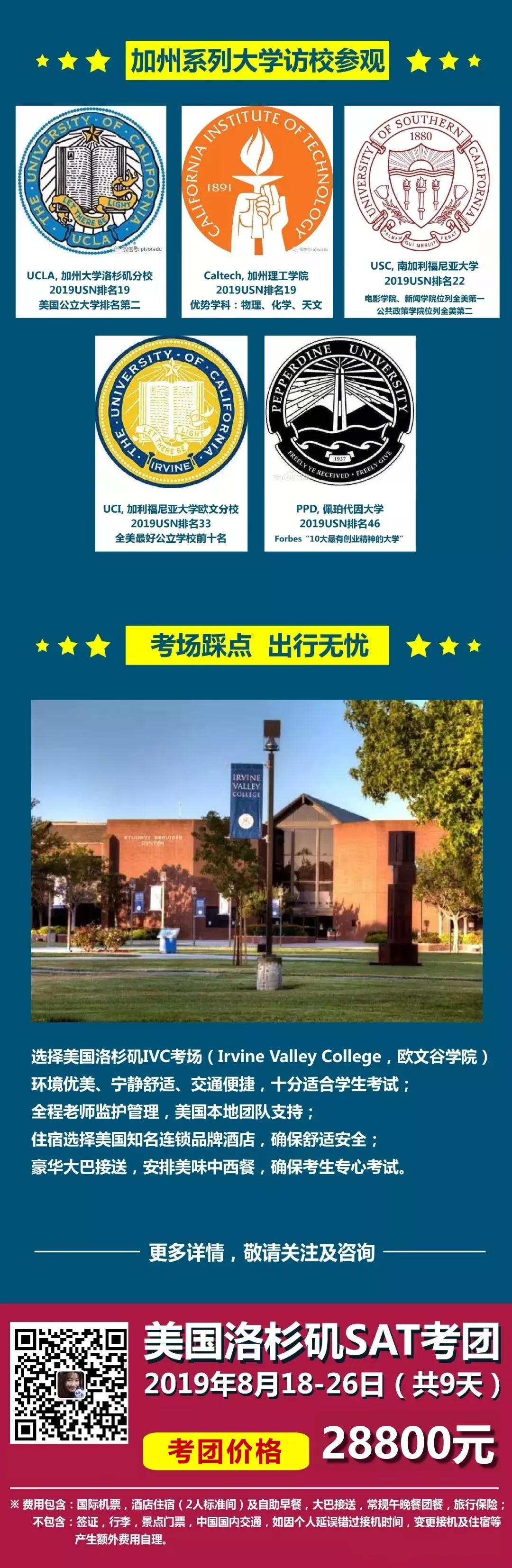 而現(xiàn)在有一個(gè)美國洛杉磯SAT的考團(tuán),除了能滿足基本的SAT考試以外,還包含了: