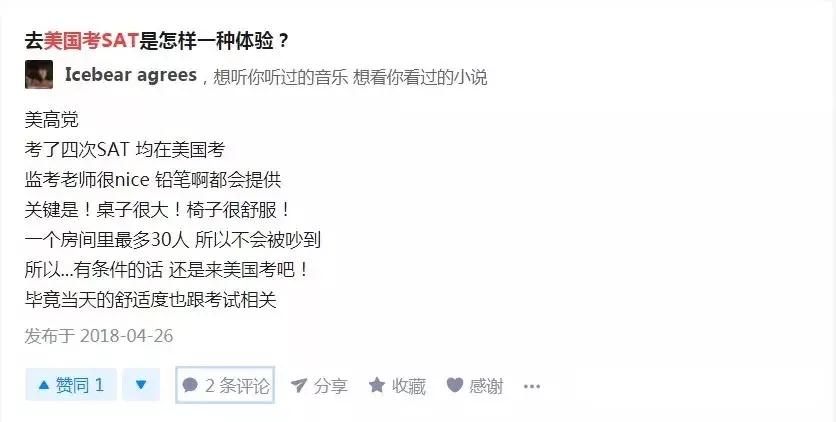 對(duì)于在美國考SAT的好處,在知乎上也有不少呼聲: