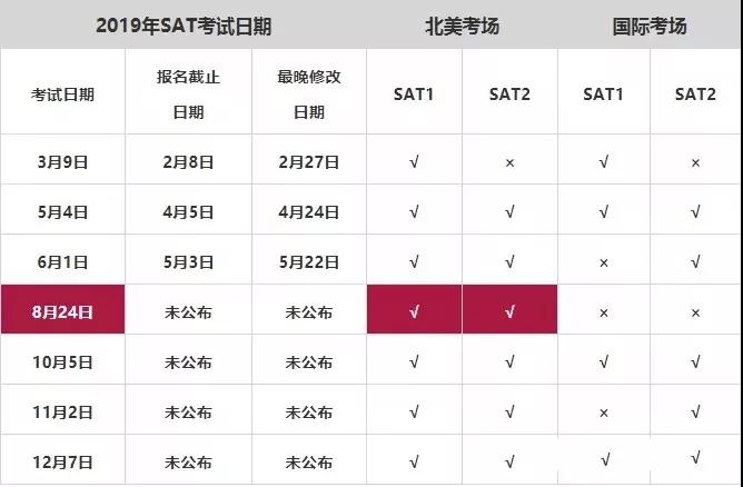 根據(jù)美國大學(xué)理事會(huì)的考試安排,2019年亞太地區(qū)有4次SAT考試機(jī)會(huì),美國是7次,可以預(yù)見2019年8月美國考試依然是優(yōu)秀11年級(jí)學(xué)生刷分的關(guān)鍵場次!