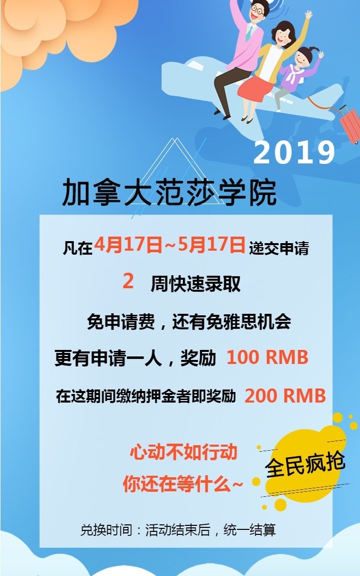 這個(gè)月范莎學(xué)院申請(qǐng)和繳費(fèi)更有豐厚的獎(jiǎng)勵(lì)