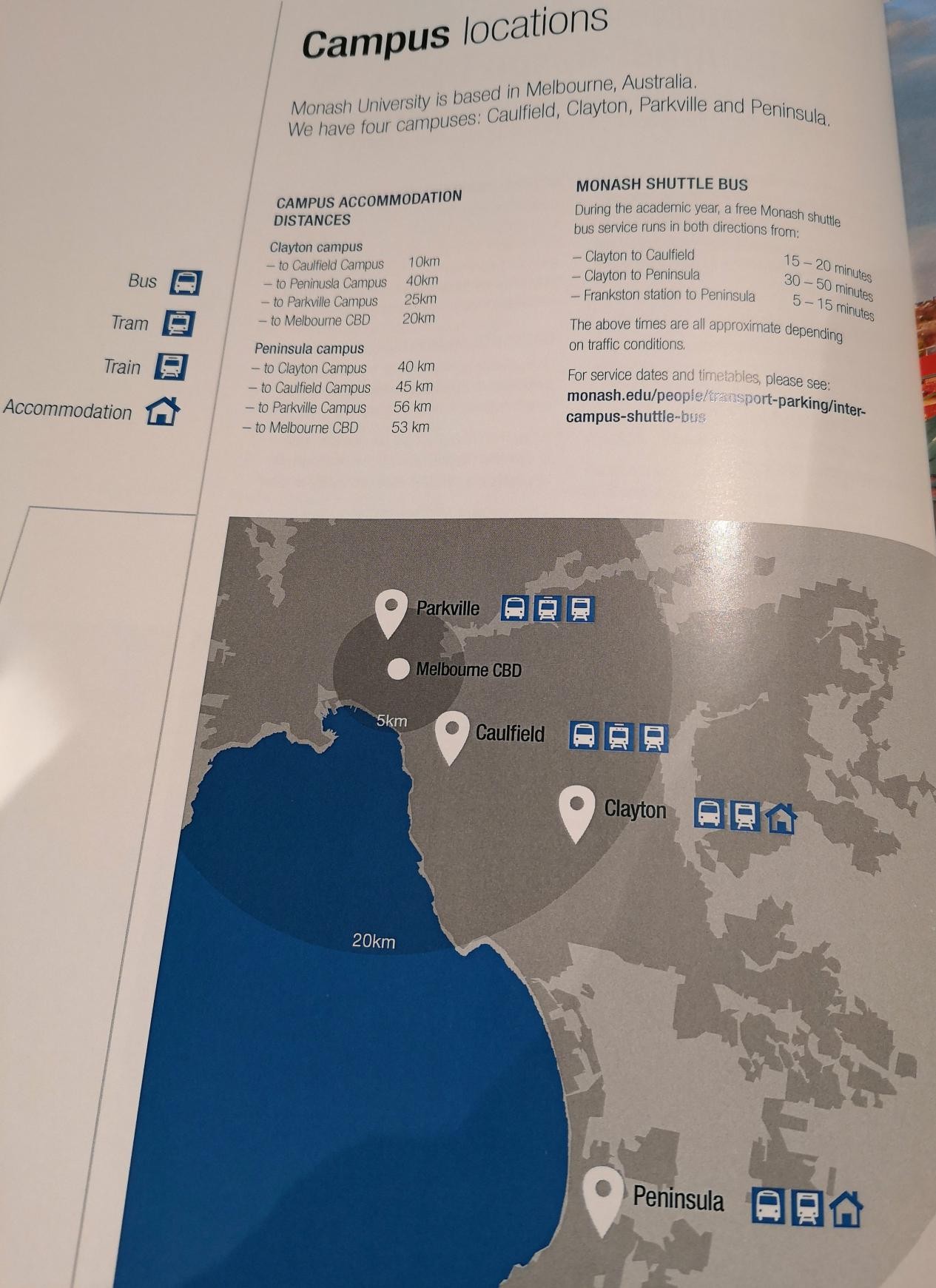 Clayton校區(qū)設(shè)有商店、銀行、咖啡館、眾多餐廳、公園、圖書館、體育館、游泳館和休閑設(shè)施,是集住宿,學(xué)習(xí),和娛樂于一體的一站式校區(qū),為學(xué)生創(chuàng)造了一個(gè)能同時(shí)兼顧學(xué)習(xí)與日常生活的良好環(huán)境。距離墨爾本市中心僅20公里,開車大約需要20分鐘,且有校內(nèi)巴士往返各主要地點(diǎn)。