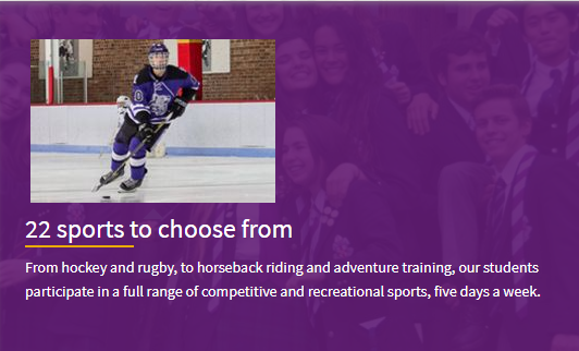 體育:Stanstead作為一所體育精英學校,在專業(yè)和敬業(yè)的體育教練帶領下,學校的運動健兒在眾多的體育項目中名列前茅,例如足球、籃球、高爾夫球、游泳、以及冰球。Stanstead的男女冰球隊在整個魁北克省都是首屈一指的球隊。同時,學校的男子籃球隊在逐步步入新英格蘭精英球隊行列。