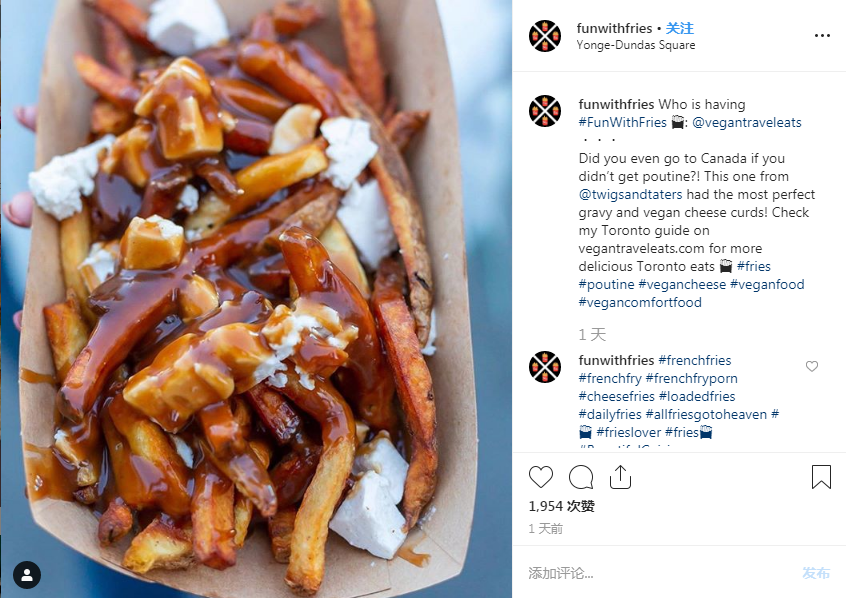 “Poutine是地球上最好吃的垃圾食品。”這個(gè)形容我覺(jué)得完全是恰如其分,高熱量的薯?xiàng)l、肉汁和奶酪制成的食品,卻能讓眾多并不想長(zhǎng)胖的人們趨之若鶩,看到poutine就會(huì)忘記節(jié)食然后大快朵頤。如果你沒(méi)有去過(guò)加拿大魁北克,很難想象poutine在當(dāng)?shù)赜卸嗝戳餍小_@個(gè)起源于上世紀(jì)50年代加拿大魁北克省鄉(xiāng)村地區(qū)的小吃在之后的幾十年迅速席卷魁北克省的大街小巷,并傳遍整個(gè)加拿大。時(shí)至今日,在魁北克省主要城市如蒙特利爾、魁北克城的街邊小店、夜店pub、路邊攤兒甚至在麥當(dāng)勞和肯德基(肯德基在魁北克省叫“PFK”)中你都可以找到poutine的身影,在加拿大的其他城市甚至美國(guó)北部地區(qū)你也可以輕松地找到一家菜單上有poutine的餐廳。