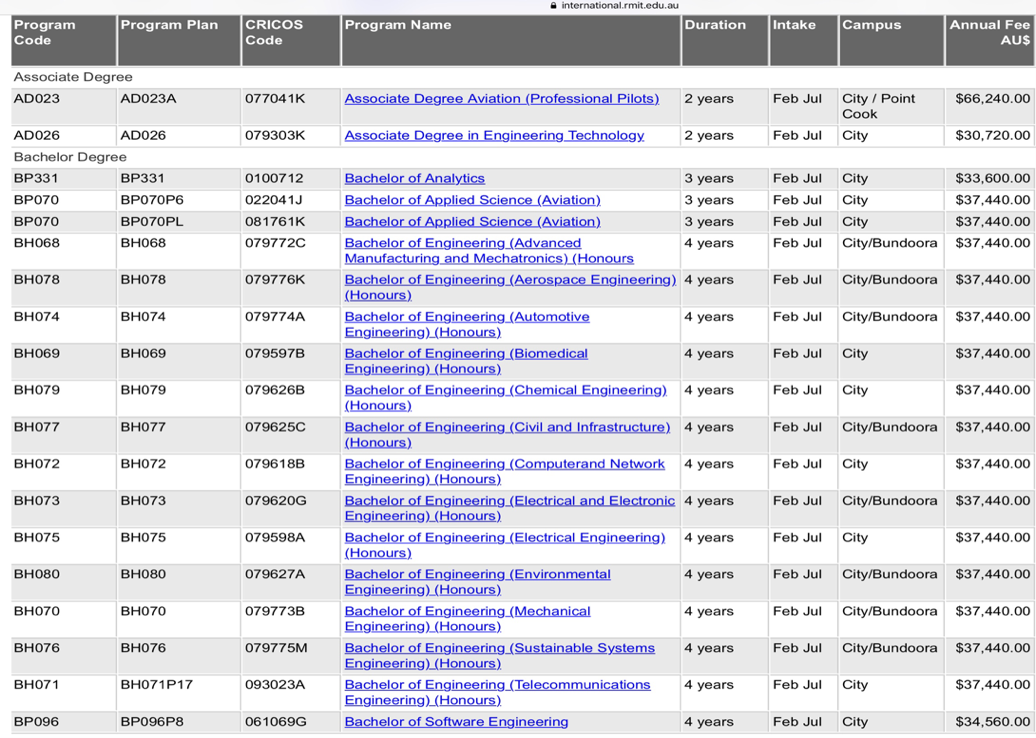 6、課程選擇鏈接:https://www.international.rmit.edu.au/info/programfeesprint.asp?programyear=2020