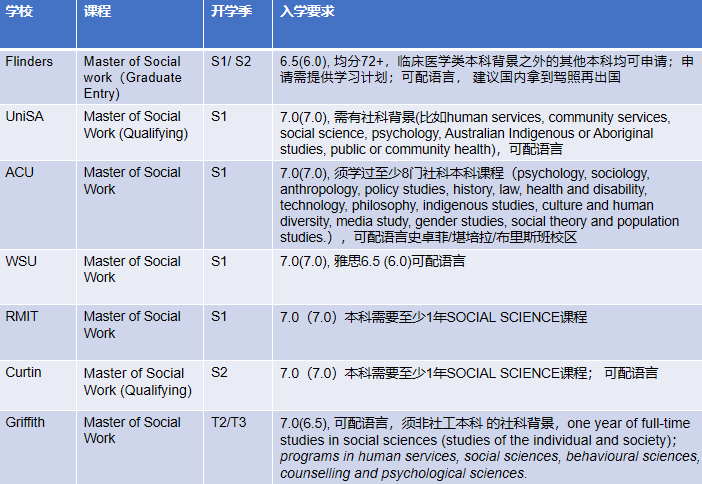 背景要求:要求本科學位,需完成至少2個單元的Social Science課程(sociology, social science, social psychology, human development, anthropology, philosophy, history, gender, law, politics, media, the arts, technology, and multicultural society)(注意:本科為social work專業(yè)的話,需要先聯(lián)系AASW做一個預評估)