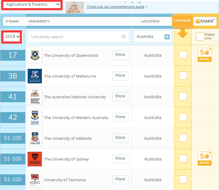 澳大利亞是一個農業(yè)大國,農業(yè)是澳大利亞的一大重要產業(yè),云集了眾多教育工作者和科研人員在各個大學和研究中心及其相關企業(yè)單位做著世界級的研究、培養(yǎng)專業(yè)的人才,對全世界農業(yè)行業(yè)做出積極的影響。從下面2019年QS世界大學排名中的農業(yè)學和林業(yè)學學科排名中可以佐證澳大利亞在農業(yè)科學研究及教育領域的世界領先地位