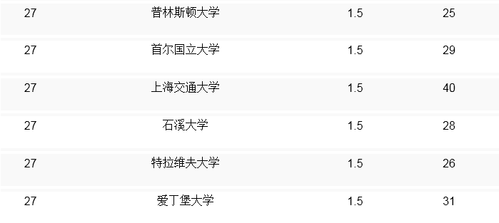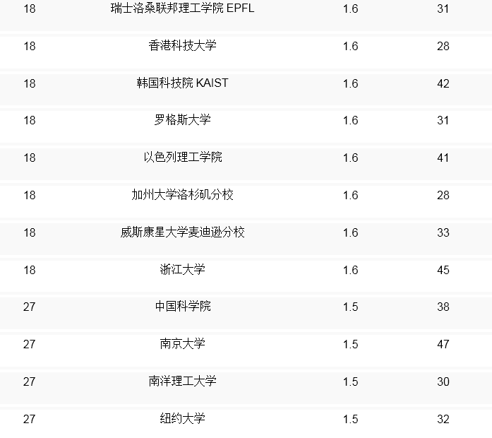 清華大學(xué)(2)、北京大學(xué)(16)、香港科技大學(xué)(18)、浙江大學(xué)(18)、中國科學(xué)院(27)、南京大學(xué)(27)、上海交通大學(xué)(27)、香港中文大學(xué)(41)、復(fù)旦大學(xué)(41)、北京航空航天大學(xué)(61)、哈爾濱工業(yè)大學(xué)(89)、西北工業(yè)大學(xué)(89)、臺灣國立大學(xué)(89)、電子科技大學(xué)(89)、中國科技大學(xué)(89)、香港大學(xué)(89)。