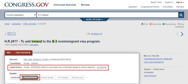 美國時間3月9日,美國眾議院通過了“將愛爾蘭加入E-3簽證計劃”法案,該法案將允許愛爾蘭人每年獲得數(shù)千份美國簽證。目前只需等待美國參議院的投票表決,通過后美國總統(tǒng)特朗普簽字后即可立法生效。