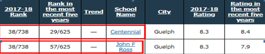 圭爾夫教育局排名安省前五十且尚有名額的學校
