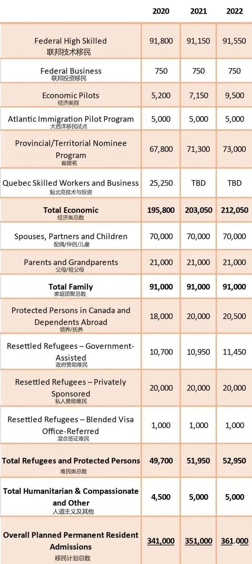 近日,加拿大聯(lián)邦政府正式公布了2020-2022年移民水平計劃(Immigration Plans):