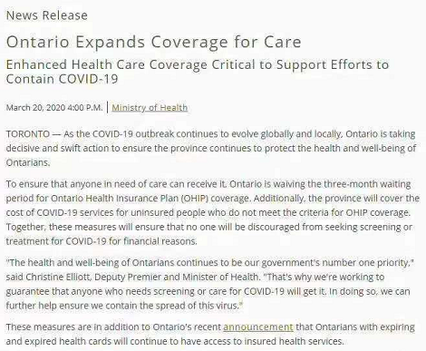 好消息還不止這些。安省衛(wèi)生部宣布,只要安省居住,不論什么身份,如不幸感染,都可以免費治。