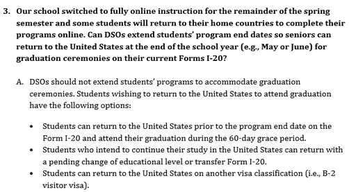 1) 學(xué)生可以在課程結(jié)束前以有效的 i-20表格返回美國,并在60天的寬限期內(nèi)參加畢業(yè)典禮。