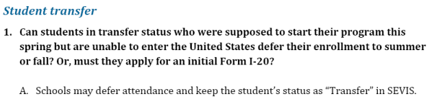 轉(zhuǎn)學(xué)生可以延期入學(xué),但SEVIS系統(tǒng)中仍保持“轉(zhuǎn)學(xué)”狀態(tài)。