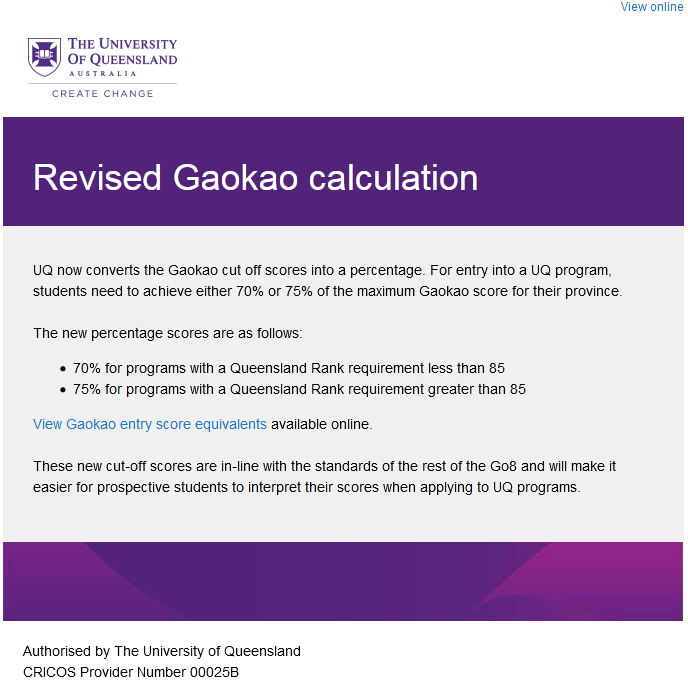 昆士蘭大學(xué)條件COE和2020年高考錄取分?jǐn)?shù)公布