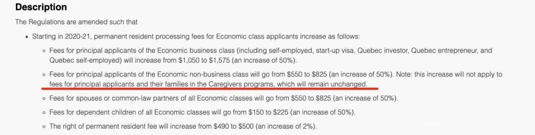 3. 新永久居民移民登陸費(fèi)用調(diào)整為500加幣(←490加幣,上漲2%)。