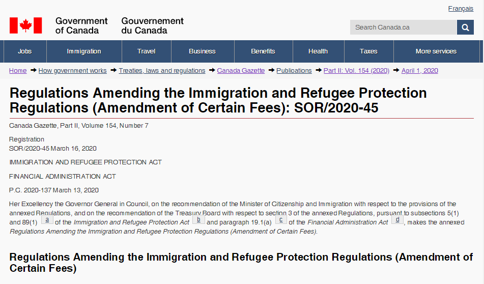 根據(jù)加拿大憲報(Canada Gazette)最新頒布的“加拿大移民申請費(fèi)用調(diào)整法規(guī)”,大多數(shù)加拿大移民類別申請費(fèi)提高了50%,包括Express Entry各類別、聯(lián)邦自雇、大西洋移民計(jì)劃和省提名等項(xiàng)目。