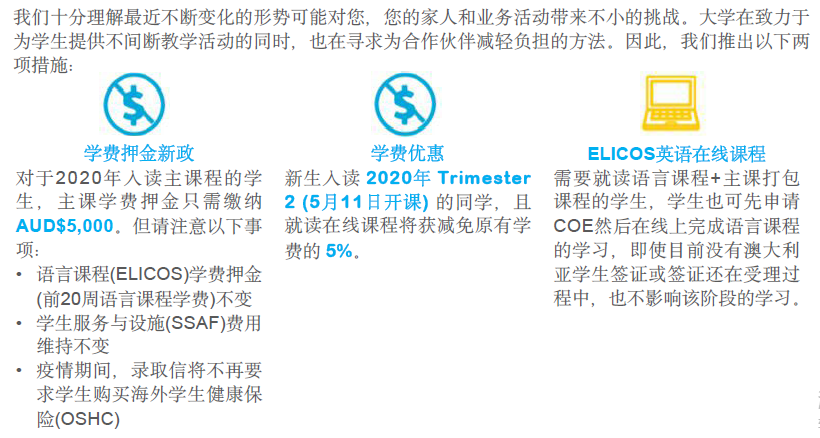 豁免所有學生的學生服務及設施使用費用。相關信息請參閱弗林德斯大學COVID-19常見問題解答: